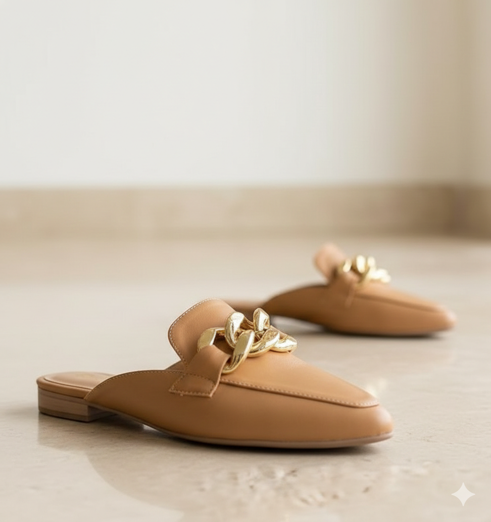 Lleva tu estilo al siguiente nivel con nuestros Mules de Cuero en Tono Camel 🤎. Este calzado es la combinación perfecta entre la sofisticación de un zapato cerrado y la libertad de una sandalia. ¡Diseñados para la mujer que ama brillar con comodidad! 👑