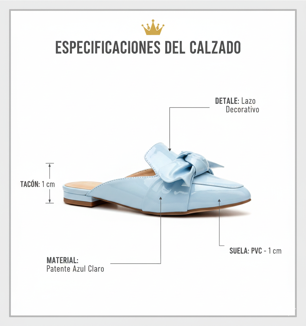 Descripción: ¡Ilumina tu outfit con el color de la temporada! Estos hermosos mules en tono celeste cielo y acabado charol son la combinación perfecta de dulzura y elegancia.
