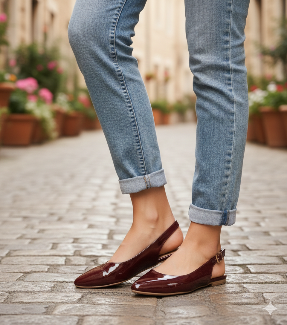 Elegancia líquida a tus pies. Nuestro modelo Vino Borgoña combina el brillo audaz del charol con la profundidad de un buen tinto. Es el zapato que no sabía que necesitaba, pero que no querrás quitarte.